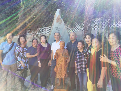 于祖師第171誕辰慶典期間,祖師木雕塑像抵達中央禪堂,剛打開包裝箱時拍攝的毫光照相。